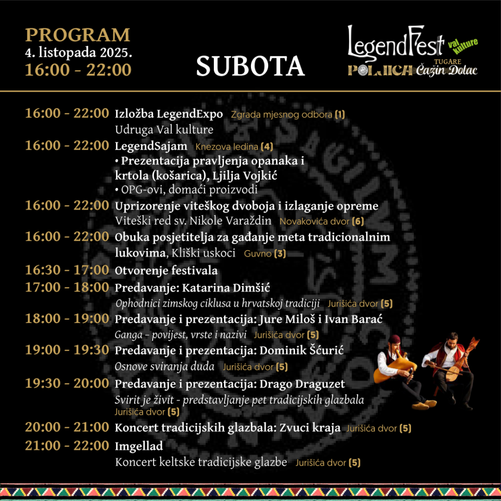 LegendFest – Poljica (program) 4. i 5. listopada 2025. Legendfest Poljica 2025. – Eko-etno selo Čažin Dolac, Tugare – 04. i 05.10.2025.